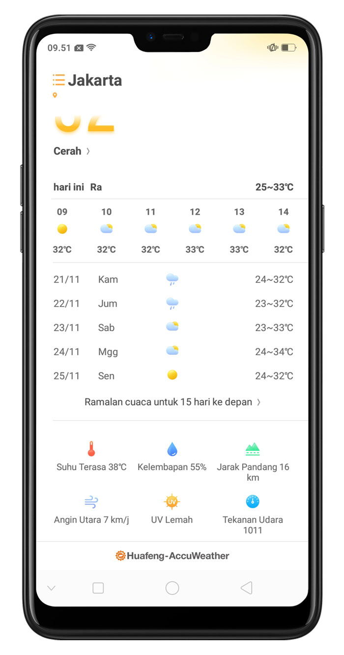 Tetap diperbarui dengan pengamatan cuaca terbaru dan ramalan cuaca masa depan yang paling akurat.